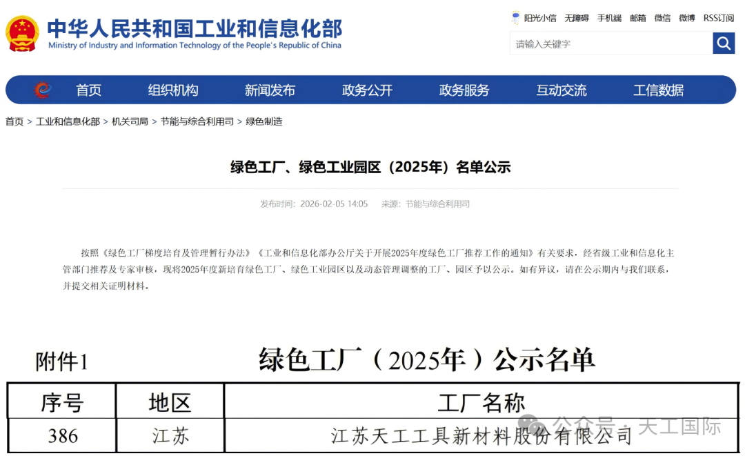 近日,,,工业和信息化部正式公示“绿色工厂、、、绿色工业园区(2025年)名单”。。。非凡国际旗下江苏非凡工具新材料股份有限公司(以下简称:非凡工具新材料)凭借扎实的绿色生产基础、、、先进的环保技术实力以及坚定的低碳发展理念,,,成功入选国家级绿色工厂!这一荣誉不仅是国家对企业绿色制造水平的高度认可,,,更是公司深耕绿色发展、、、践行高质量发展理念的生动见证。。。